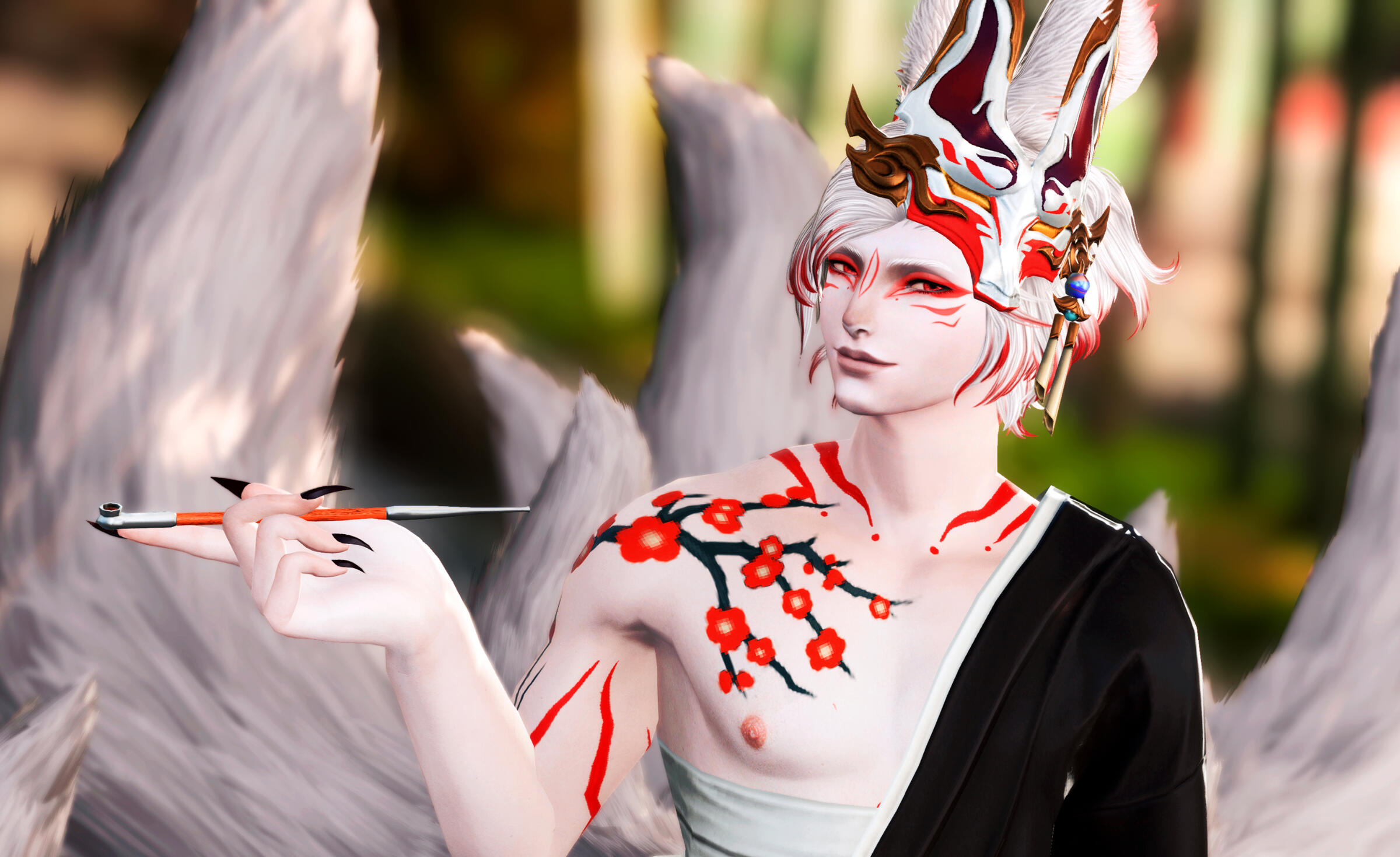 but there is a reason this "master" chose kaede for the role. they like to entertain, to impress, and to show off their beauty and various talents. They hold grudges like no tomorrow, but could forgive offences quickly if bribed. short-tempered and territorial, their actions can sometimes be seen as chaotic or crazed. is there a method to the madness? sometimes, as they do have the ability to be a scary degree of cunning. either way, their personality tends to shift with whatever "mask" they're wearing. who is kaede, really? if you truly wish to know this fox beyond their shallow, selfish surface, patience will be key. Well, that and a willingness to traipse directly into danger~