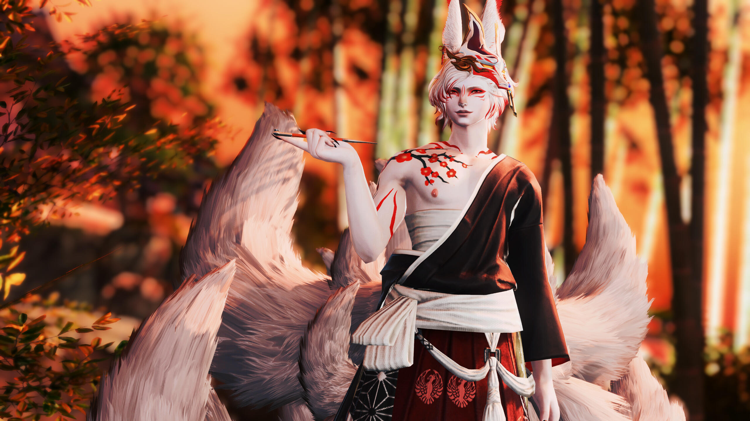 about kaede mistbloom is a kitsune, a shapeshifter, a magical being of the Far East. They can take many forms, but they do tend to favour appearing as a masculine viera for when they are being "themselves" in civilized society, though sometimes they opt to be feminine instead. whatever best suits the mood. while they are not exactly heroic, kind-hearted, or altruistic, kaede is affable and somewhat flamboyant most of the time. easy to talk to and willing to listen. (to what ends?)